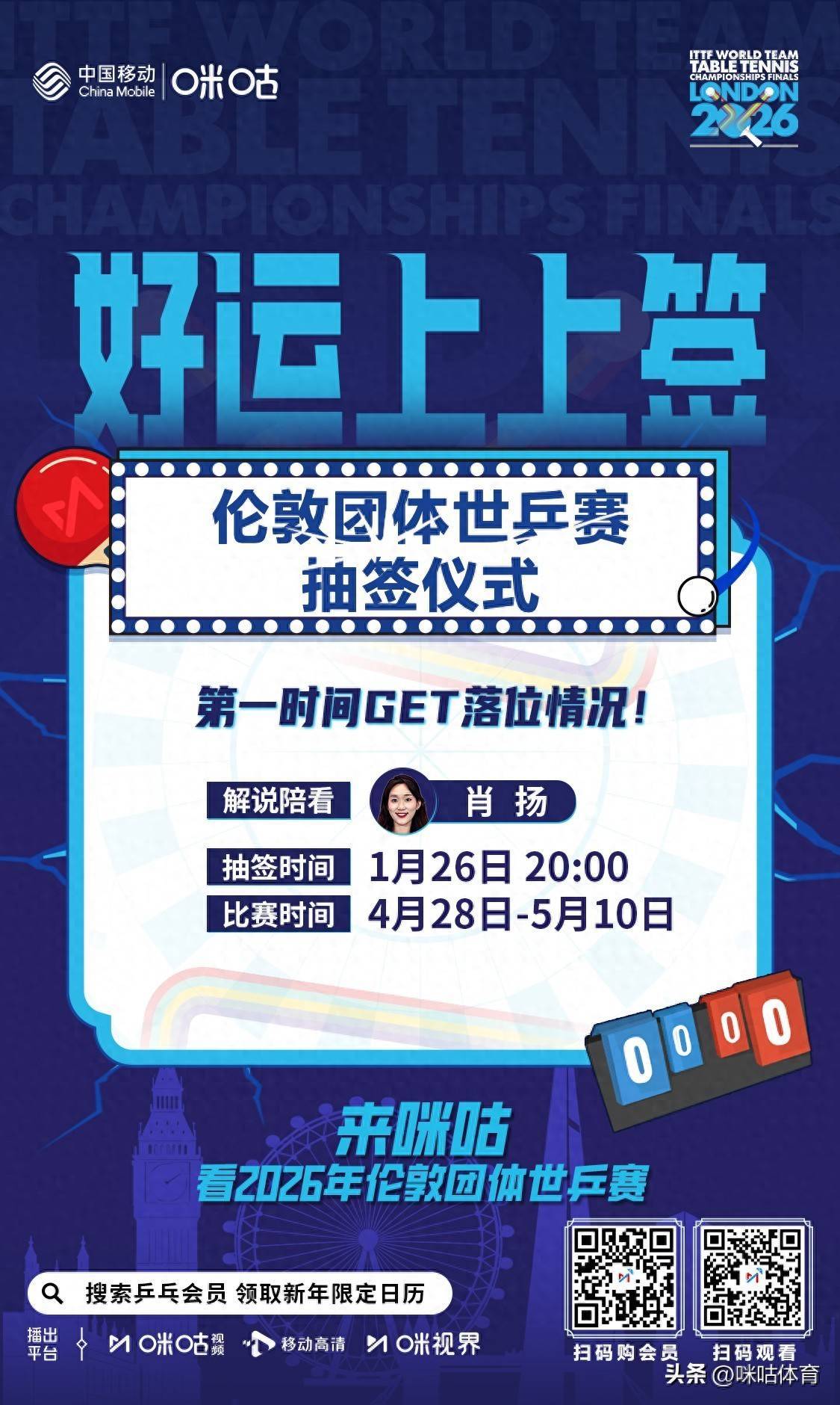 来咪咕看2026伦敦团体世乒赛抽签仪式