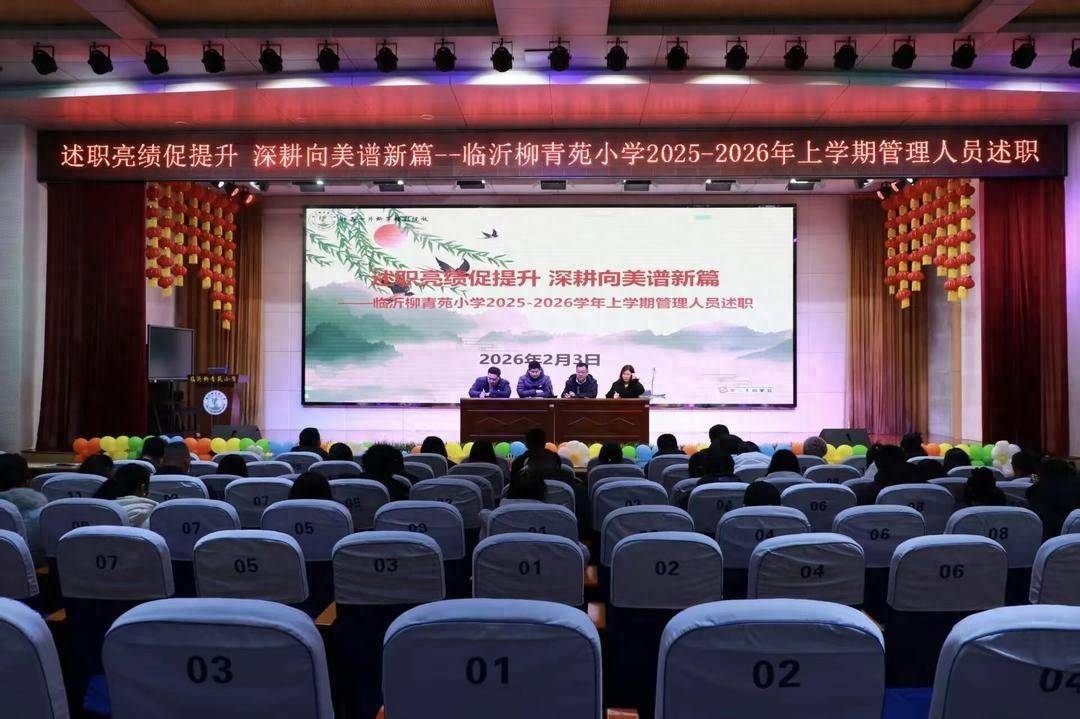 近日,临沂柳青苑小学召开2025-2026学年上学期述职评议活动,全体教干及科室管理人员参与,以“述绩亮效、互评共进”的方式,总结过往、谋划新篇。