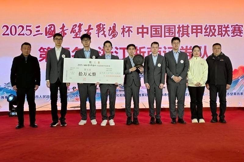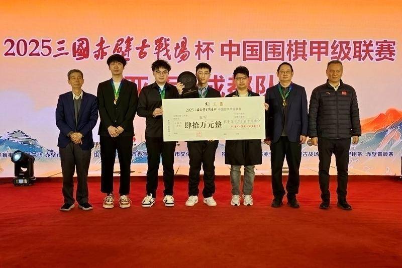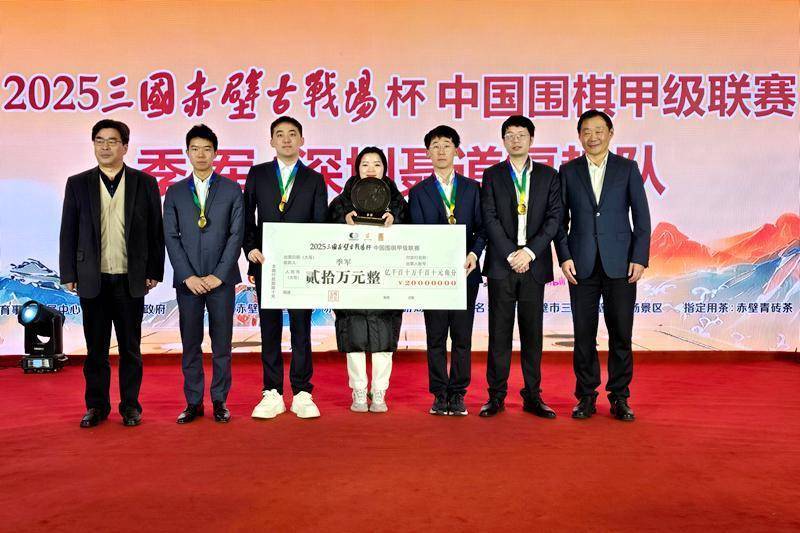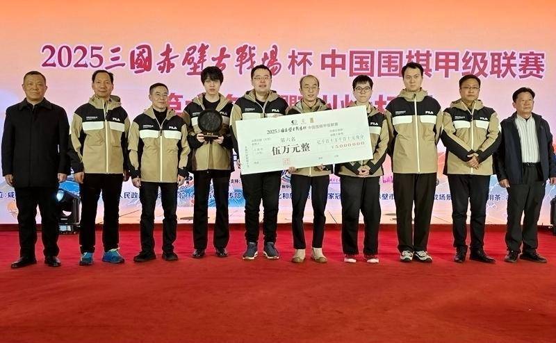 冠军苏泊尔杭州队。人民网赤壁1月26日电 1月26日,2025三国赤壁古战场杯中国围棋甲级联赛颁奖典礼在湖北赤壁举行。